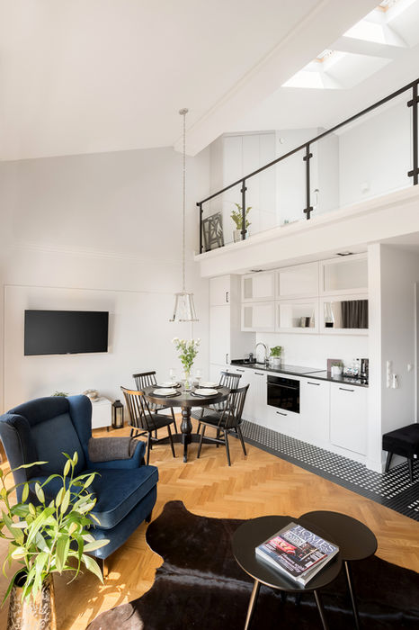 Cosy & spacious studio in very central Poznan to let just moments away from Poznan Old Town Square. Flat fully furnished and equipped. Thanks to it's location in the city centre the apartment is just perfect for city lovers. Consist of reception room combined with open kitchen, 1 bedroom (mezzanine), 1 bathroom with shower. Underground parking optional in nearby building. Top floor. Porter downstairs. Air conditionig Deposit required.